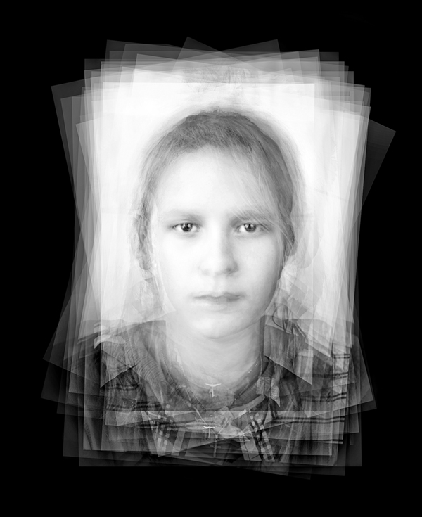 Using the extensive photographic material from the I am project and the method of composite portraiture developed by Sir Francis Galton (1822–1911) I conducted a study on the nature of the human being. In Galton’s method portraits are superimposed on each other to obtain one picture, a minimal essence of the subject.