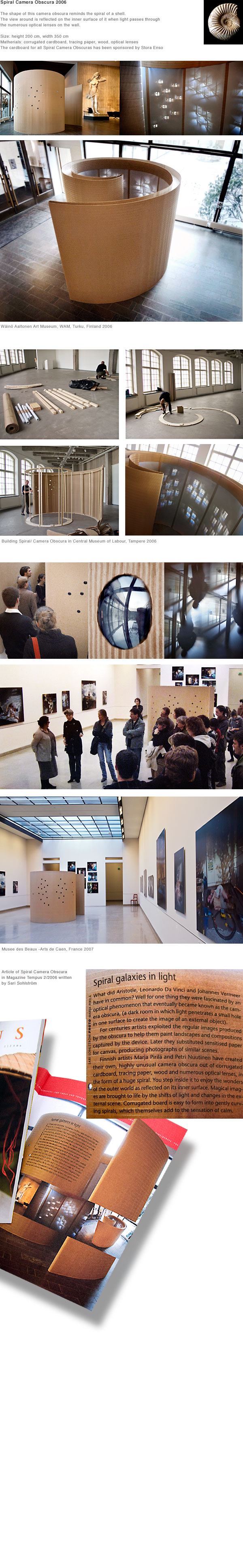 CAMERA OBSCURA WORKS w u n d e r k a m e r a e n c y c l o p e d i a s p i r a l b i r c h e s c o m b s n o w c a m e r a s s e l f p o r t r a i t t u b e s s c r e e n s a l b u m m o t h e r´s b u c k e t s e y e s a n d m o u t h